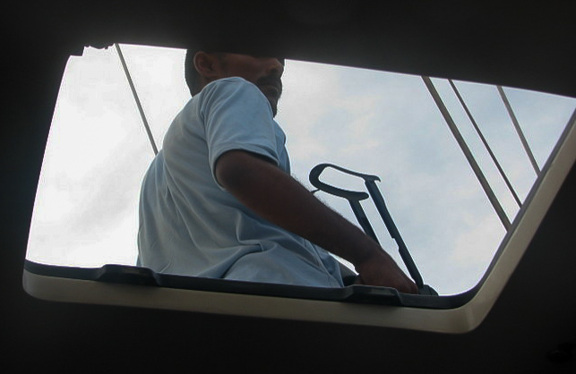 Sima and I were asked to go below, where we watched from the hatches and port lights.