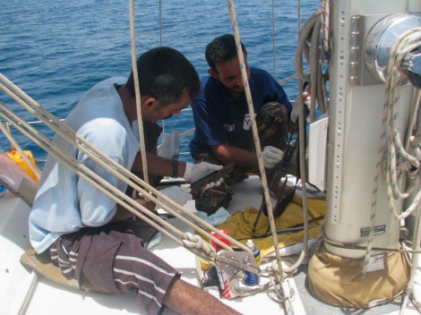 From guidance we’d received from other sailors, however, this did not necessarily call for complete relaxation. There were stories of Yemeni Navy vessels forcing sailboats to stop, and then extracting “fines” because the sailboat was in a “prohibited area” or had committed some other such fictional transgression.
