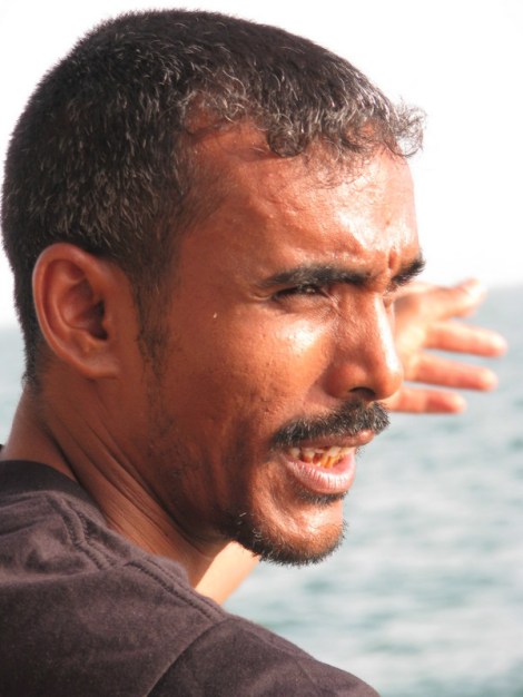 Later, as night fell, another boat approached. On this one, the men WERE heavily armed, with a gun at the bow bigger than ours. Captain Al-Fatimee told us that all was OK, telling us that this was the Yemeni Navy.